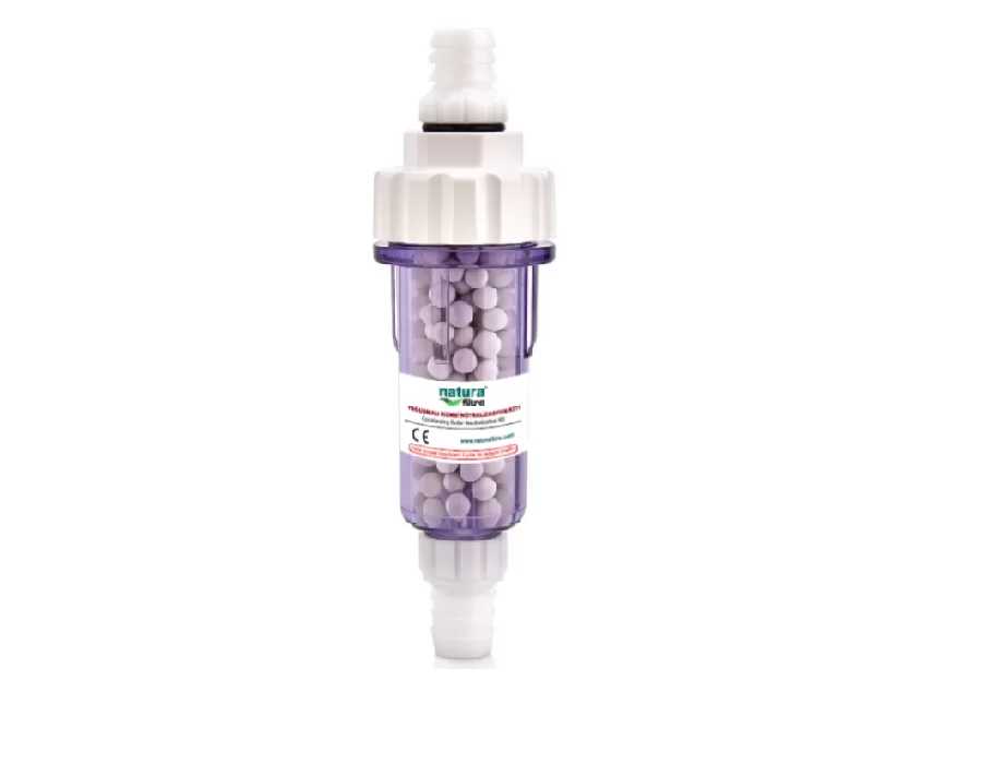 KURULUM Asit nötrleştirici, yoğuşma suyu tahliye hattına veya yatay olarak monte edilebilir. Asit nötrleştirici, dondan ve güneş ışığından korunan kuru bir yerde kalifiye personel tarafından kurulmalıdır. Kurulum sırasında asit nötrleştiriciye zarar verebilecek herhangi bir şoka neden olmayın. BAKIM Yılda bir kez, asit nötrleştiricinin çıkışındaki sıvının pH'ı pH test şeridi kağıdı veya elektronik pH metre kullanılarak yerinde ölçülebilir. Belirtiler su idaresi tarafından belirlenen minimum değerin altına düşerse asit nötrleştiriciyi veya içerdiği granülleri değiştirin. Minimum değer genellikle pH 6,5'tir. |